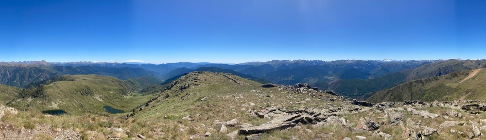Para subir a Campirme tomamos la pequeña carretera que sale de Esterri d’Àneu hacia Unarre; luego, poco después de Burgo, seguimos una pista infernal que ascienda a través del bosque hasta abrirse a una hermosa zona de pastos donde los rebaños son de caballos y donde la belleza de los potros hipnotiza. Dejamos el coche en el collado y comenzamos a andar. Son kilómetros de carena pelada con vistas a ambos lados. A la izquierda, la Maladeta, culminada por el Aneto. A la derecha, la Pica de Estats y el Monteixo. Al frente, el Montroig y el Ventolau. Y entre todos ellos, cimas y cumbres y valles hasta donde la vista se pierde. A muchos les ponemos nombre. A otros muchos no.