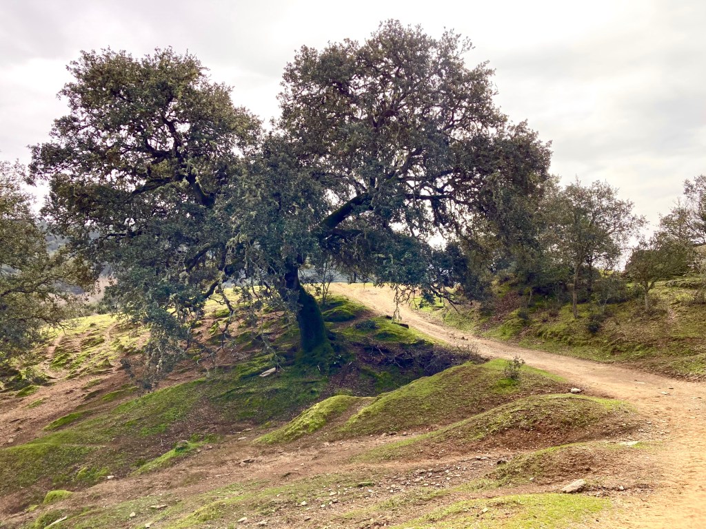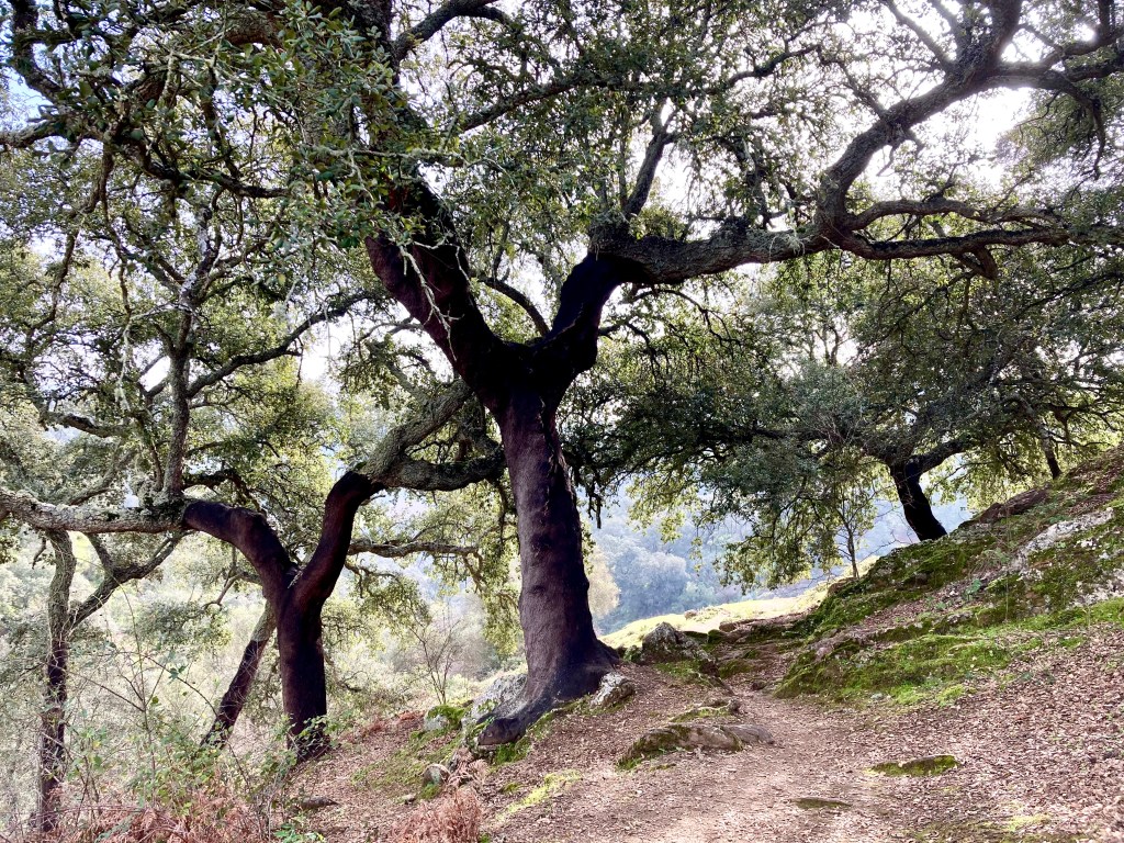 Hay días de andar deprisa y días de tomárselo con calma. Y este sendero invita a la calma. Invita a abrazar esos troncos parcialmente desnudos. Invita a la charla. Invita a dejar que los ojos vaguen por el horizonte de dehesas y colinas. Invita a sentarse junto al río, el Huéznar, a cruzar sus puentes y a escuchar sus aguas. E invita a dejarse inundar por la tranquilidad que da el rodearse de árboles centenarios.