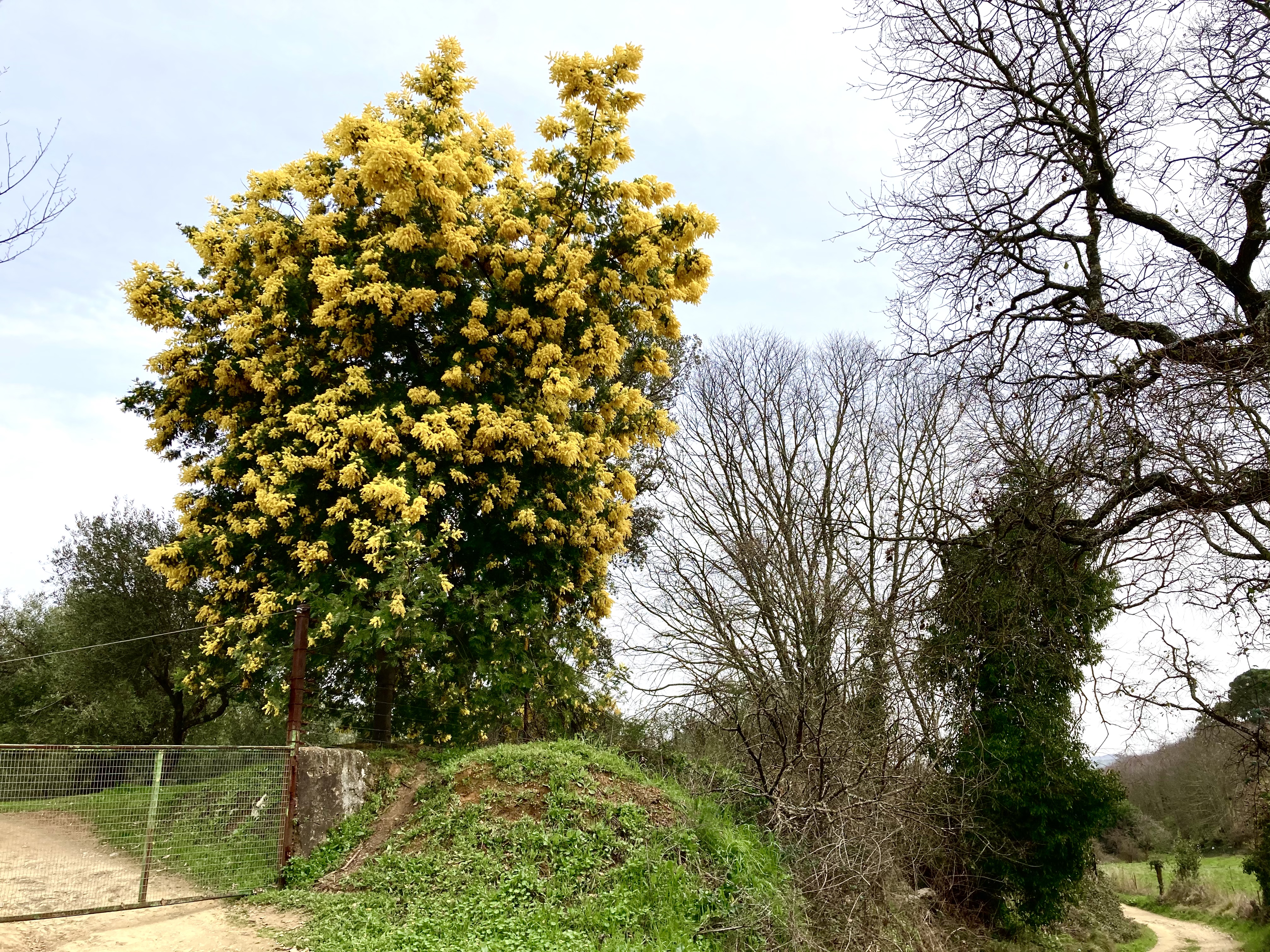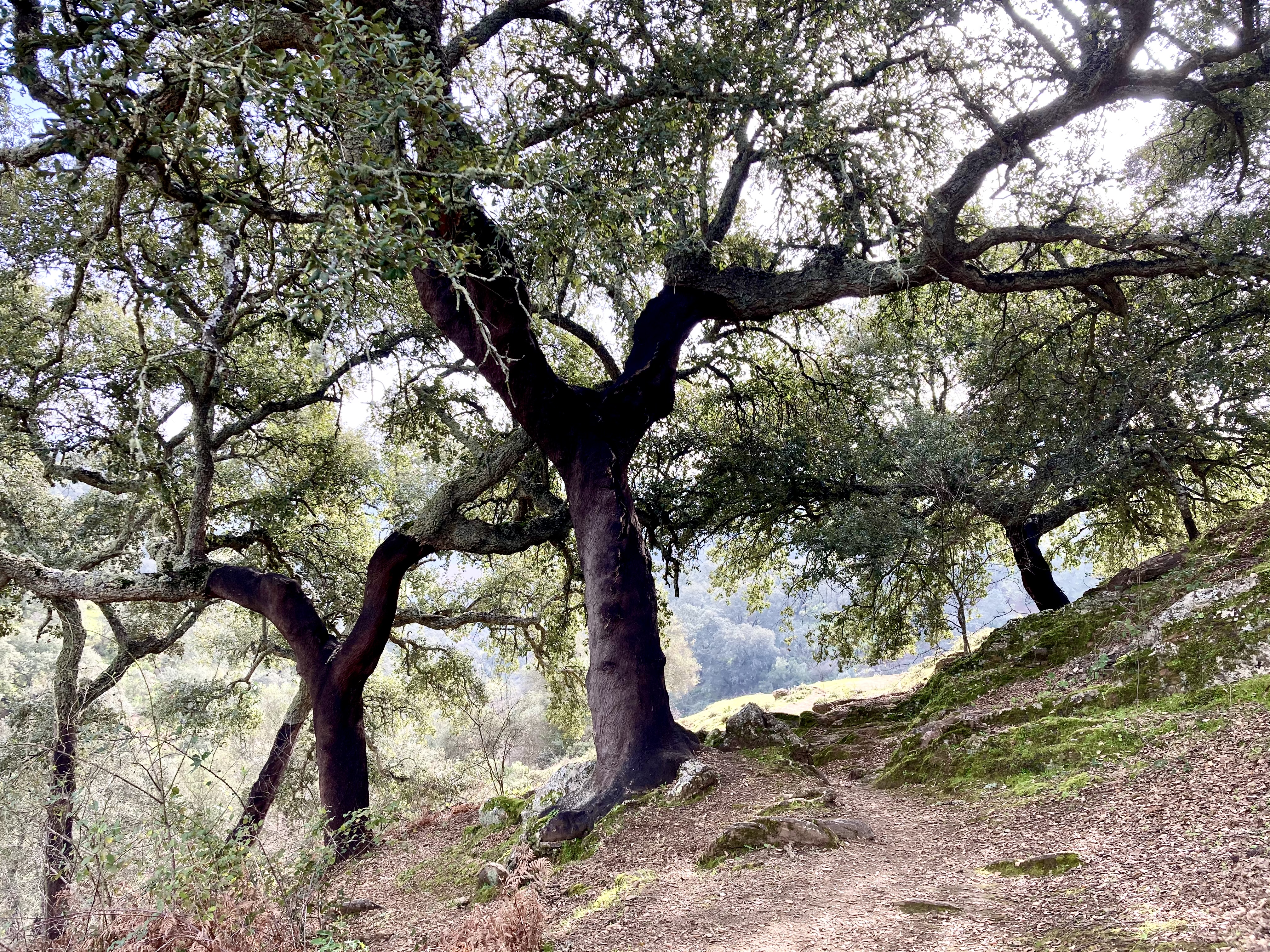 Y con esta sensación de libertad parcialmente recuperada y con estas ganas de viajar no ya a los confines de la tierra pero sí a los de la provincia, ayer, sábado, Ana y yo cogimos el coche y nos plantamos en Cazalla de la Sierra dispuestas a hacer el Sendero de las laderas: algo más de ocho kilómetros de camino entre alcornoques y alguna que otra mimosa florecida.