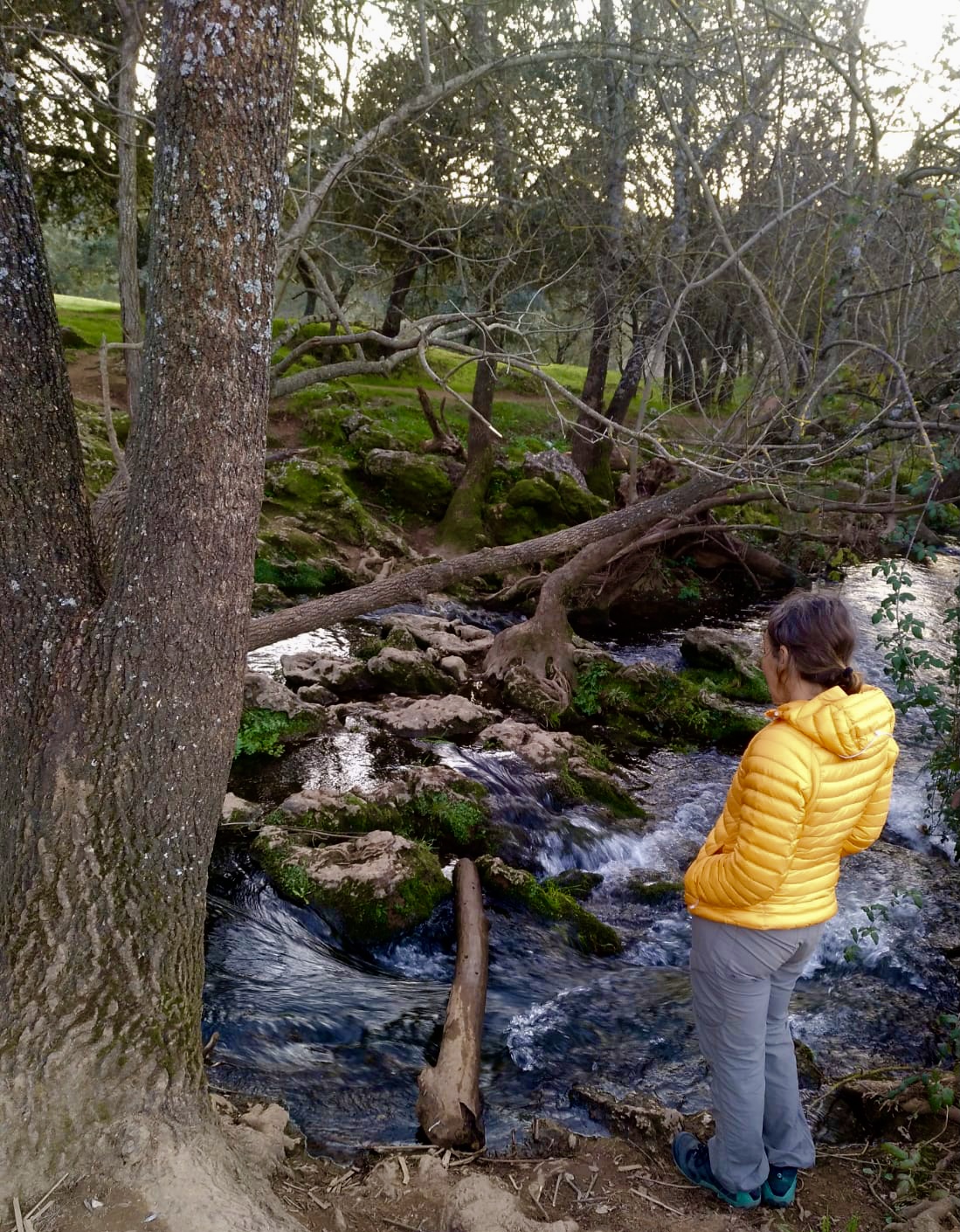 Hay días de andar deprisa y días de tomárselo con calma. Y este sendero invita a la calma. Invita a abrazar esos troncos parcialmente desnudos. Invita a la charla. Invita a dejar que los ojos vaguen por el horizonte de dehesas y colinas. Invita a sentarse junto al río, el Huéznar, a cruzar sus puentes y a escuchar sus aguas. E invita a dejarse inundar por la tranquilidad que da el rodearse de árboles centenarios.