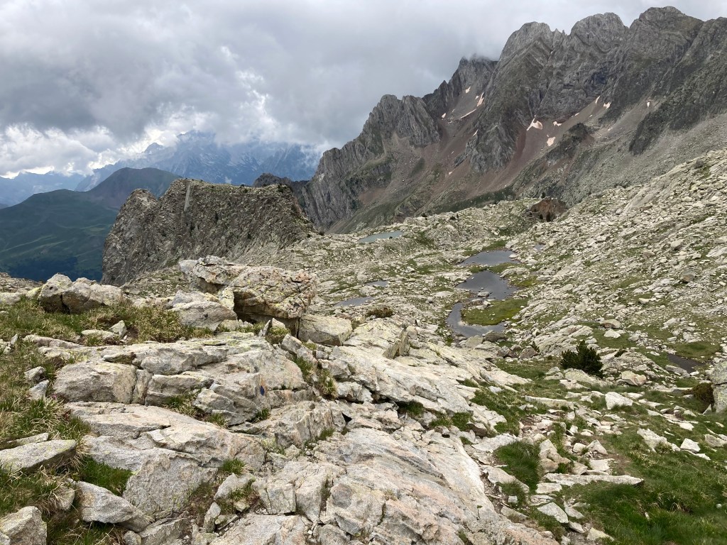 Hoy he cumplido catorce días de andadura, de Torla a Áreu, unos 250 kilómetros recorriendo lo más duro y también lo más hermoso del Pirineo. Y curiosamente esta última etapa, en la que me he decidido por el GR11 y no por la Alta Ruta, es la que más dura me ha resultado. El calor, el salir tarde, la falta de estímulos visuales a la altura de los que he tenido estos días… Sí, he comido cerezas directamente de los árboles en Boldís Sobirà. Sí, he visto dos yeguas con sus potros justo antes del tramo final de subida al Coll de Tudela. Sí, he charlado amigablemente con una pareja que hacía la ruta inversa. Sí, he tenido una vista preciosa del Monteixo, de la Pica d’Estats y de la Pica Roja desde el collado. Y sí, he llegado a Àreu con los pies destrozados. Supongo que la paliza de ayer me ha pasado factura pero puesto que ya había decidido concluir aquí por este año, no tiene mayor importancia.