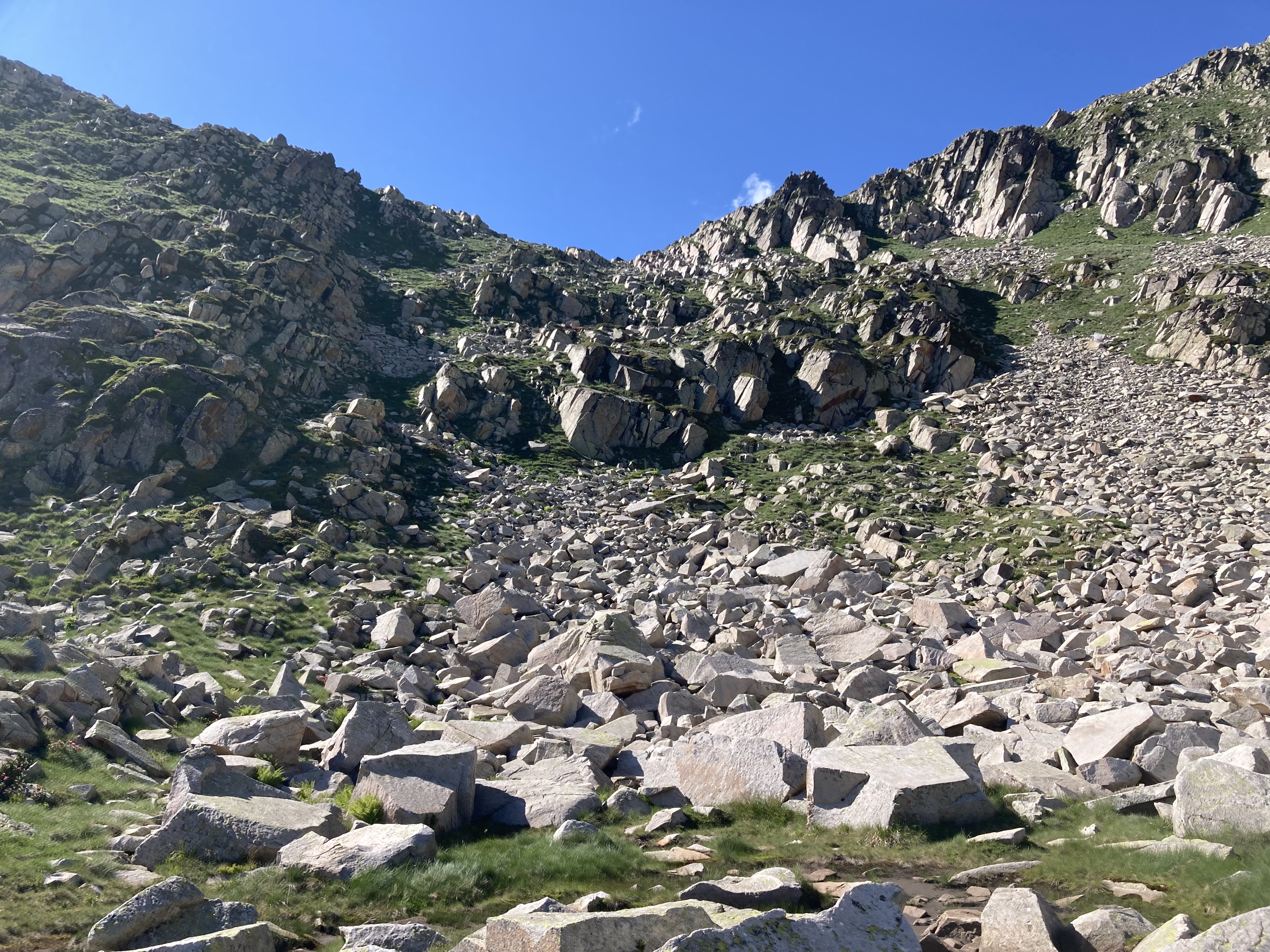 ¿Cuántas veces he hablado de paisajes espectaculares, mágicos, excepcionales, increíbles, paradisíacos, maravillosos…? Haya dicho lo que haya dicho hasta ahora, el mejor de los días de montaña que jamás he tenido ha sido, sin duda, hoy. Y eso a pesar de haber sido una jornada larguísima, maratoniana, de más de veinticinco kilómetros, de haber subido unos 1700m y haber bajado otros tantos, de haber andado unas doce horas, cinco de ellas sin camino marcado y cuatro de estas últimas por pedreras (o tarteras o morrenas, como queramos llamarlas), imposibles.
