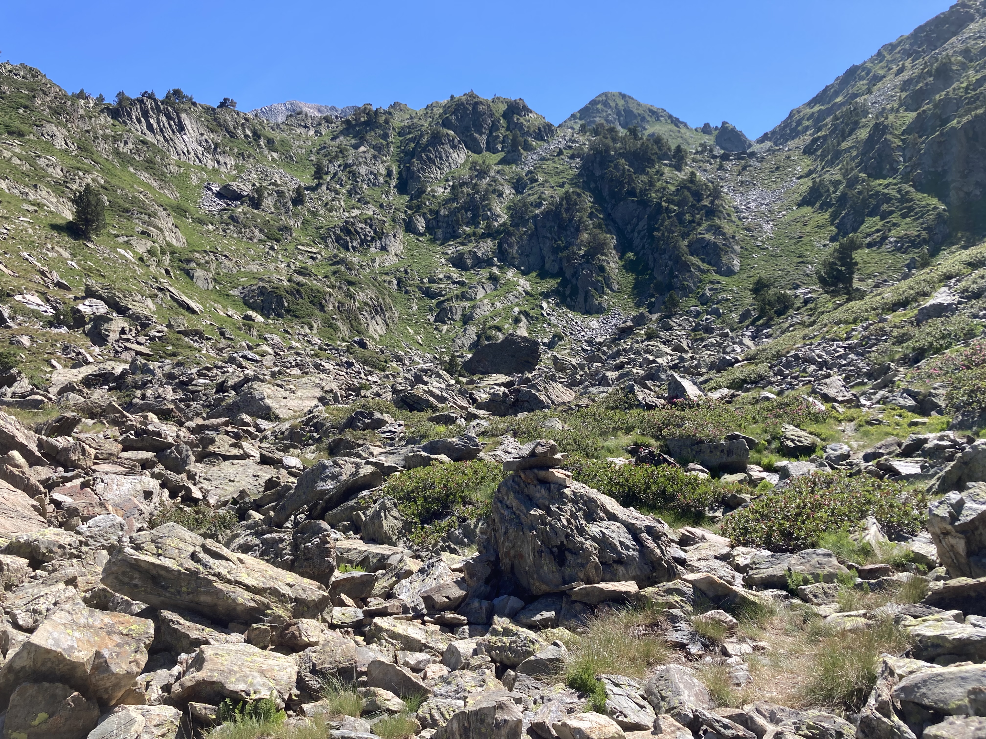De cuando allá por 2009 hice por primera vez este mismo recorrido, recuerdo lo difícil de la subida al Coll de la Cornella y poco más. Es lo que tiene ir en grupo, que se pierde parte de la experiencia estética porque la atención la acaban acaparando otras cosas, como el adaptarse al ritmo, a menudo exigente, del grupo, o la conversación. La segunda vez, ya sola, me equivoqué de collado, subí al de Arnabate, y aunque eso no debería haber sido un gran problema, mi inexperiencia hizo que sí lo fuera y que, a pesar de darme cuenta de la belleza del resto del recorrido, la prisa por recuperar el tiempo perdido no me dejara disfrutarlo como merecía.