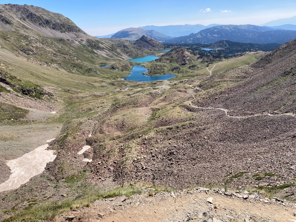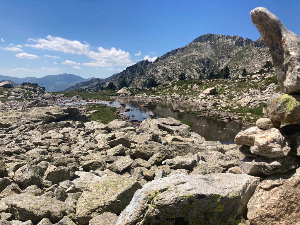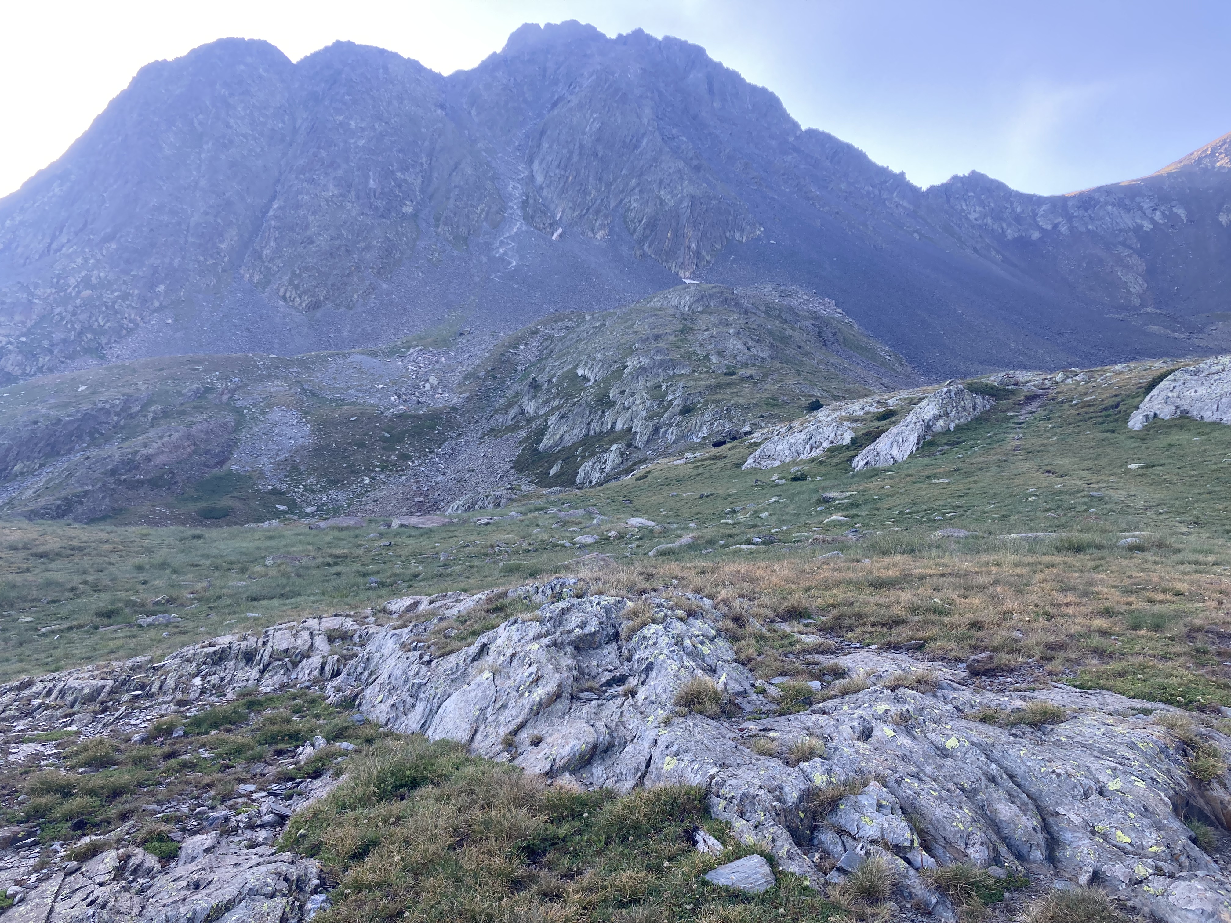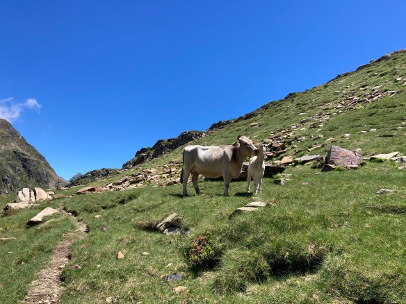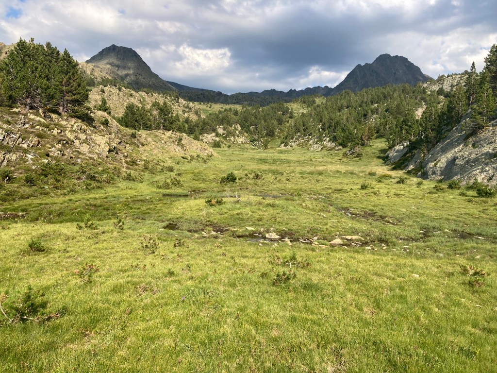El caso es que he descubierto otra forma de aproximación a esta montaña –desde el noroeste, en vez desde el suroeste–, he podido pasar por el lago de Besines y comer una omelete en el refugio del mismo nombre (en una terraza de vistas impresionantes), y he tenido que atravesar el Col de la Coume d’Anyell, lo que me ha devuelto la posibilidad de extasiarme con la belleza de uno de esos circos rocosos pirenaicos que, entre tanto verde, ya estaba echando de menos este año.