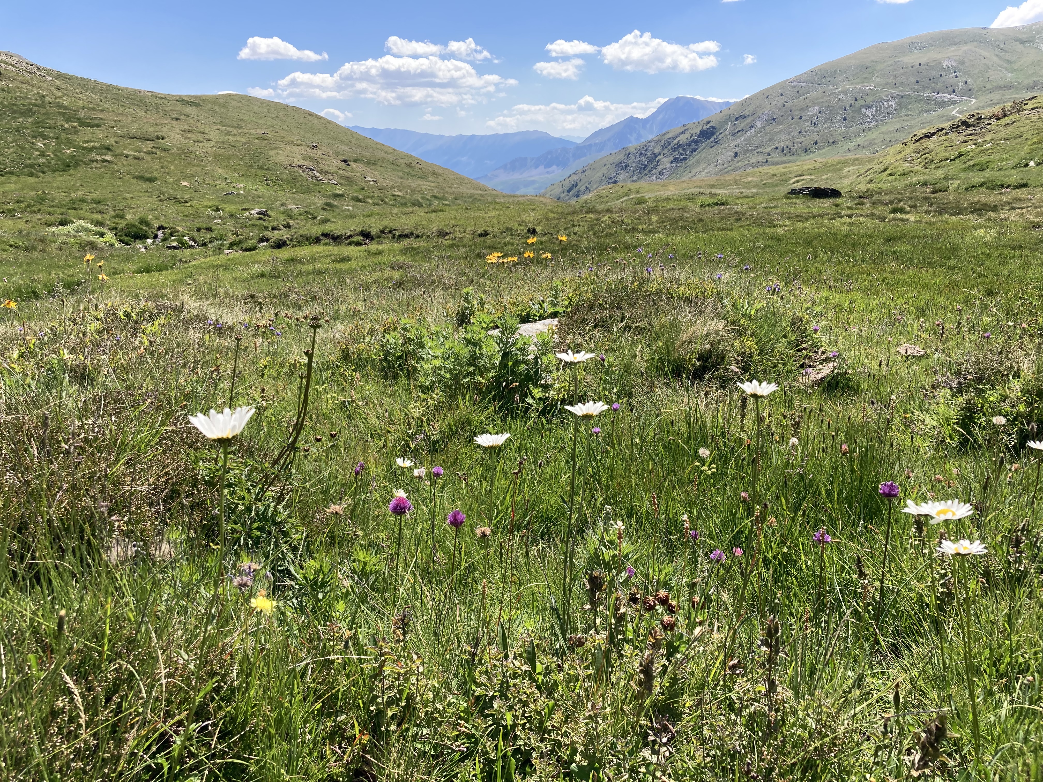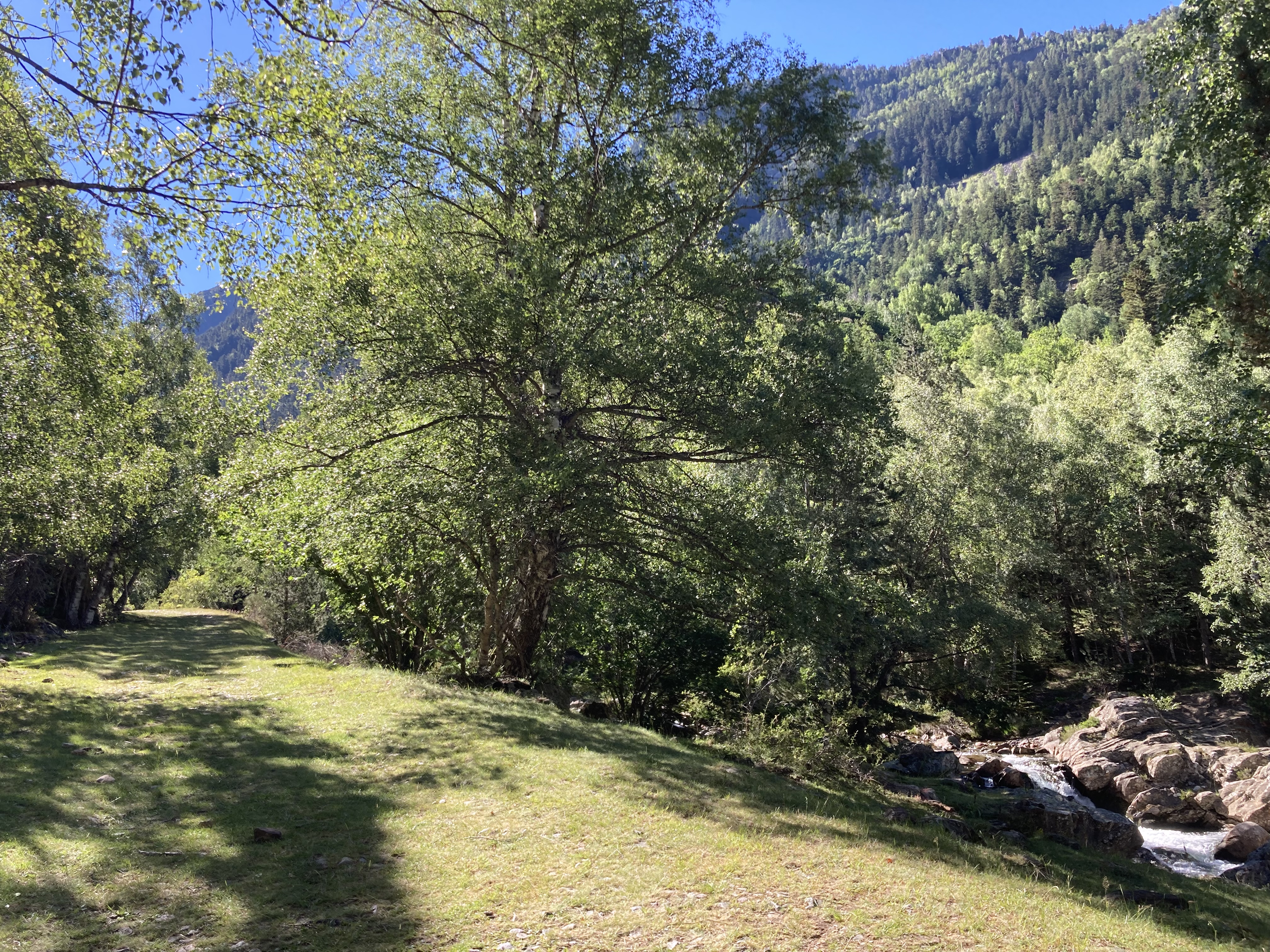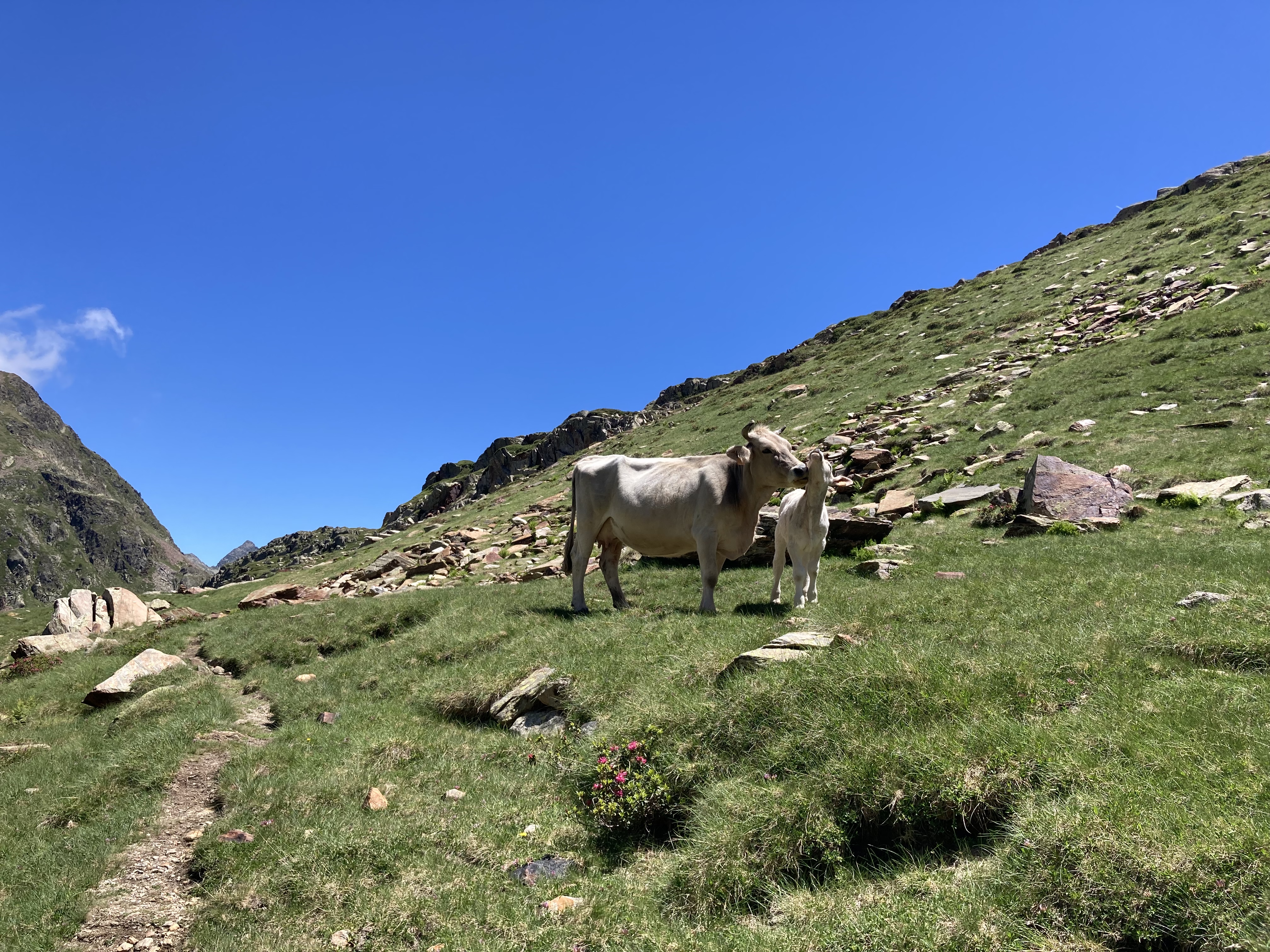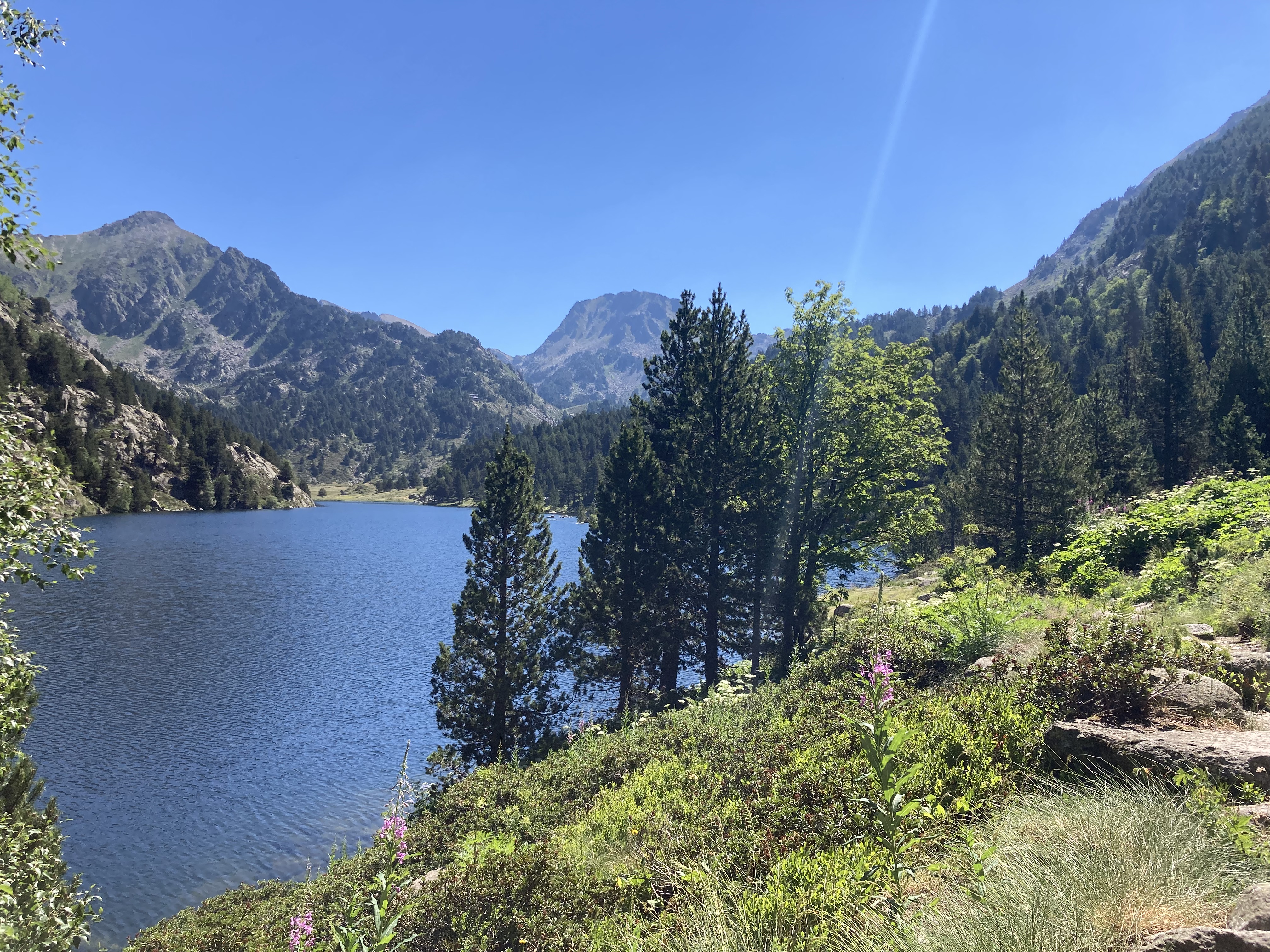 El caso es que he descubierto otra forma de aproximación a esta montaña –desde el noroeste, en vez desde el suroeste–, he podido pasar por el lago de Besines y comer una omelete en el refugio del mismo nombre (en una terraza de vistas impresionantes), y he tenido que atravesar el Col de la Coume d’Anyell, lo que me ha devuelto la posibilidad de extasiarme con la belleza de uno de esos circos rocosos pirenaicos que, entre tanto verde, ya estaba echando de menos este año.