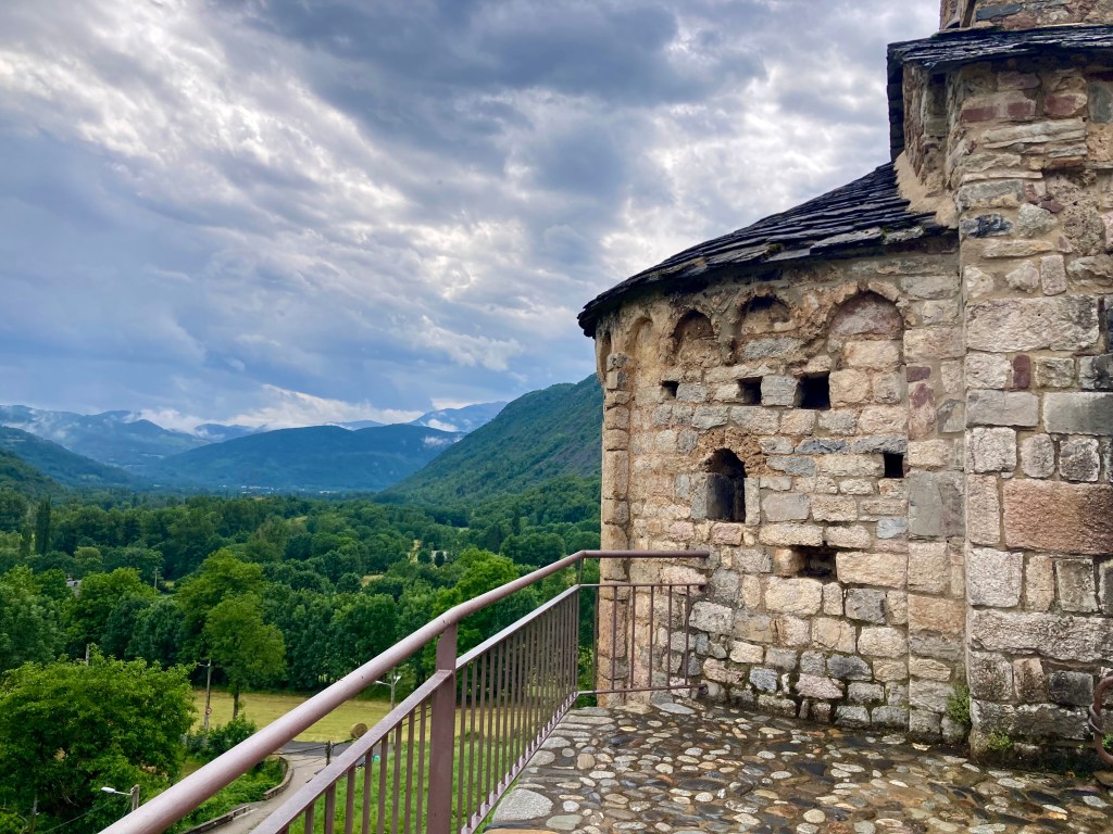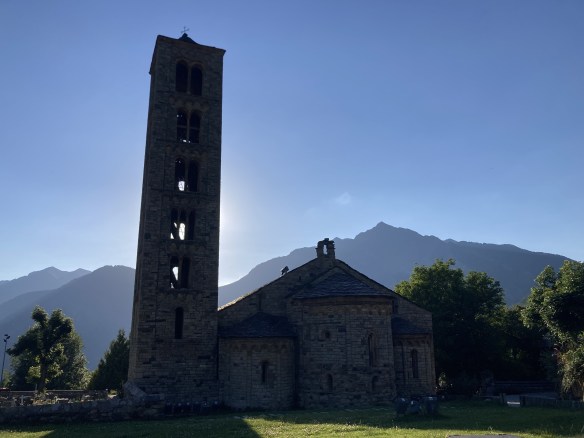 Y termino comiendo –pero no perdices, sino cordero ecológico– en una terraza con vistas a la preciosa iglesia de Sant Clement de Tahüll, uno de esos lugares mágicos que puebla mi retina desde que viera por primera vez su imagen en mi libro de Historia de octavo de EGB. Durante toda la semana que he pasado aquí, no ha habido tarde que no me haya quedado contemplándola, boquiabierta, fascinada; ni vez que haya pasado a su lado sin que haya podido evitar fotografiarla.