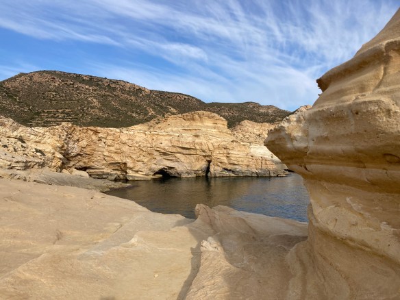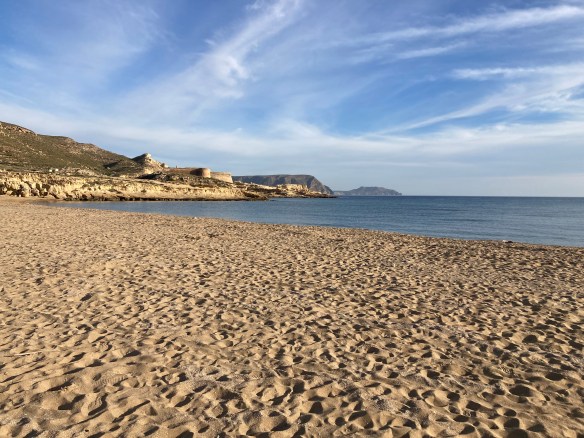 Con la mirada perdida entre el cielo, el mar, y esas dunas fosilizadas, ocres y caprichosas, que dan forma a las calas cercanas a El Playazo, agradezco esta libertad trabajosamente conquistada, sí, pero libertad al fin.