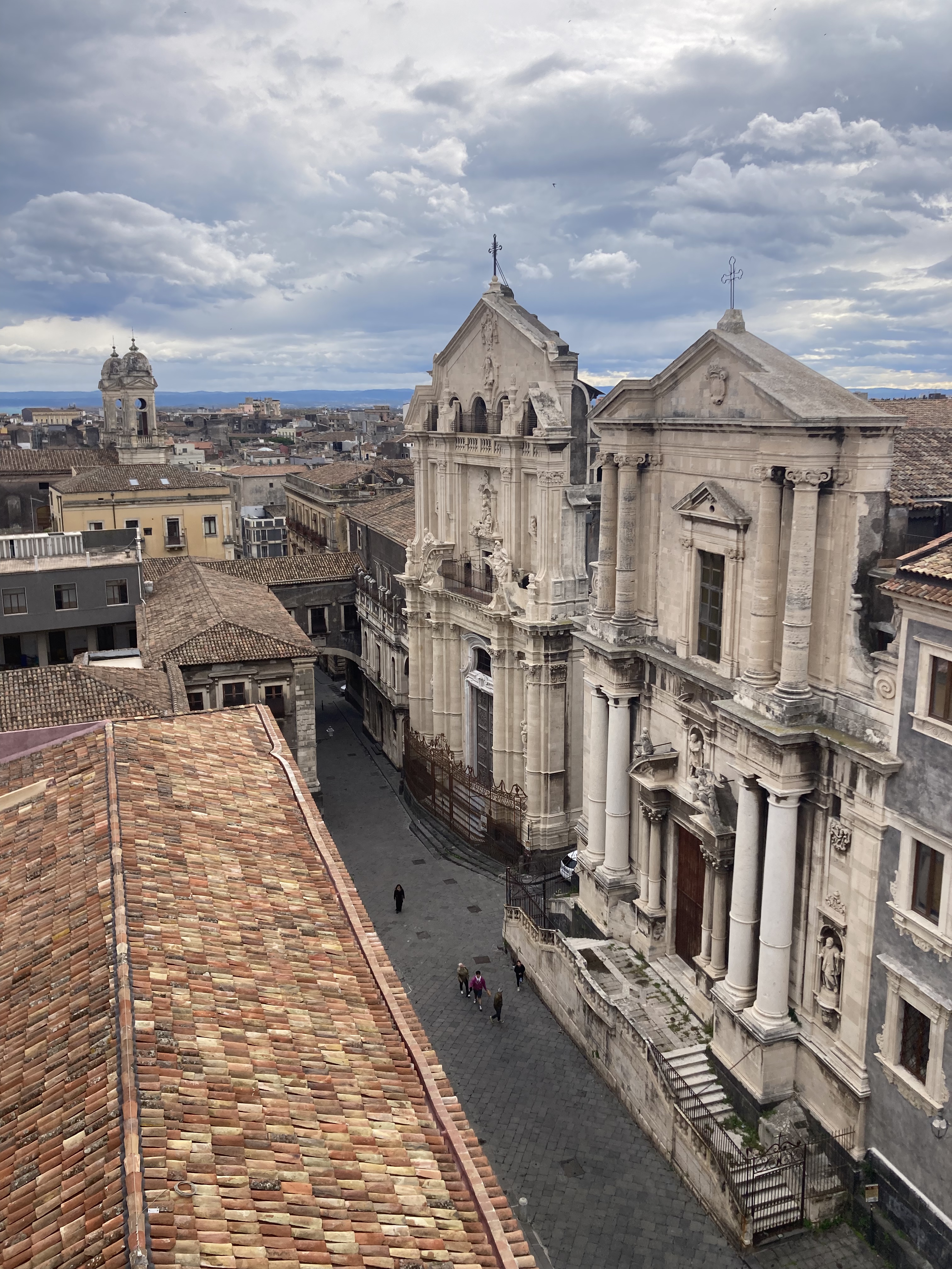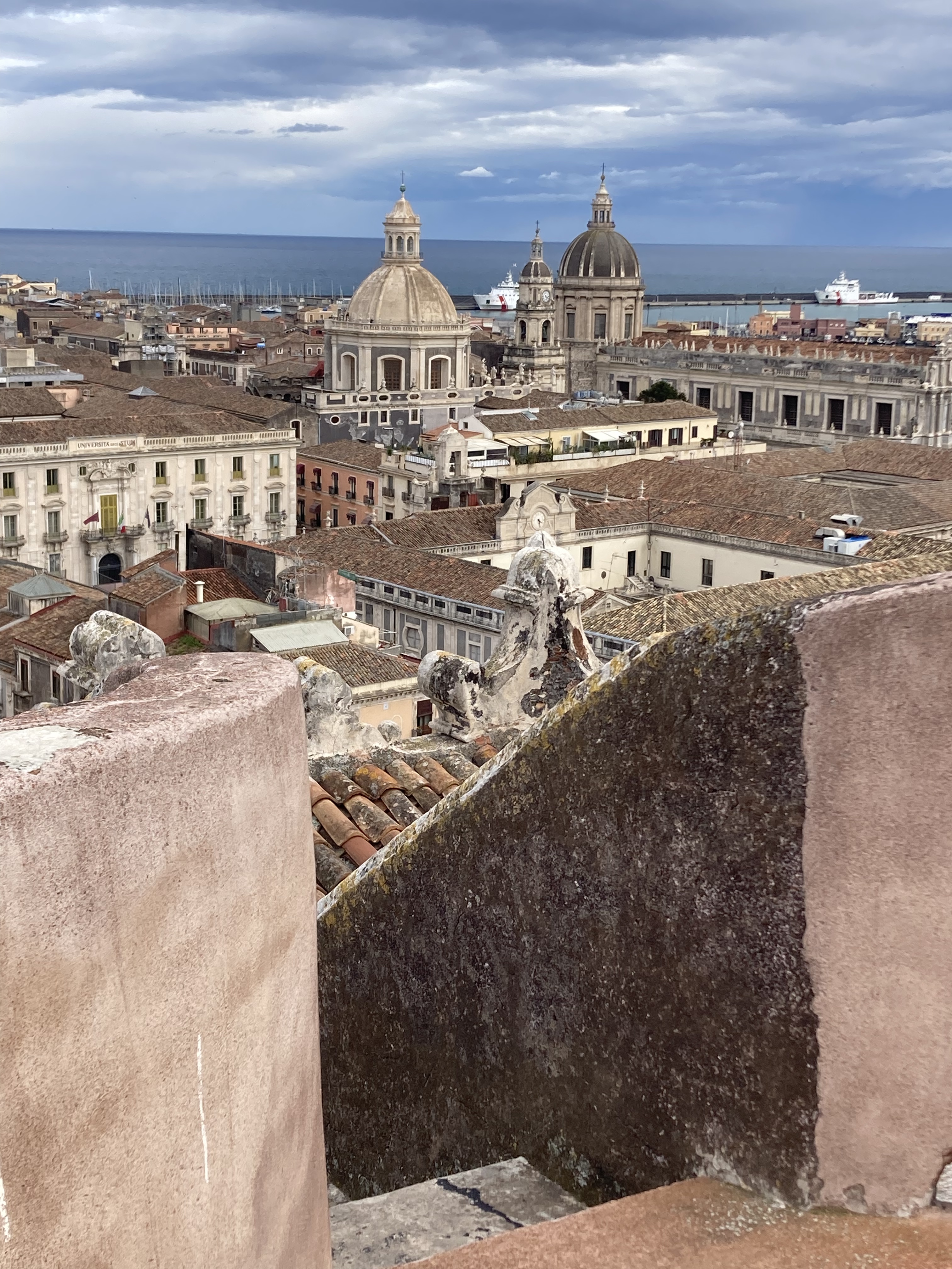 Leo que el fuego se ha aproximado a Catania y Taormina y siento un ataque agudo de nostalgia. Nostalgia de esta última, de su entorno de exuberantes colinas floridas que miran al mar, de mansiones, de glicinias, y sobre todo, del maravilloso teatro que la corona. Me rindo ante él y ante esos griegos que eligieron el mejor de los lugares posibles para situarlo. Y nostalgia de Catania, que visité sin muchas expectativas pero en la que me topé con la Via dei Cruciferi, y ahí, y aún sin ser el Barroco mi estilo favorito, tuve que tragarme todos mis prejuicios y dejarme apabullar por la monumentalidad de una calle imposible de puro grandiosa. Y subir a sus tejados, y disfrutar de las vistas, y dejarme llevar por ellas. Y también nostalgia de esa costa tan próxima a Catania, la de los Cíclopes, y ese Ulises tan presente recordándome a cada paso que un viaje no es sino la metáfora de una vida entera.