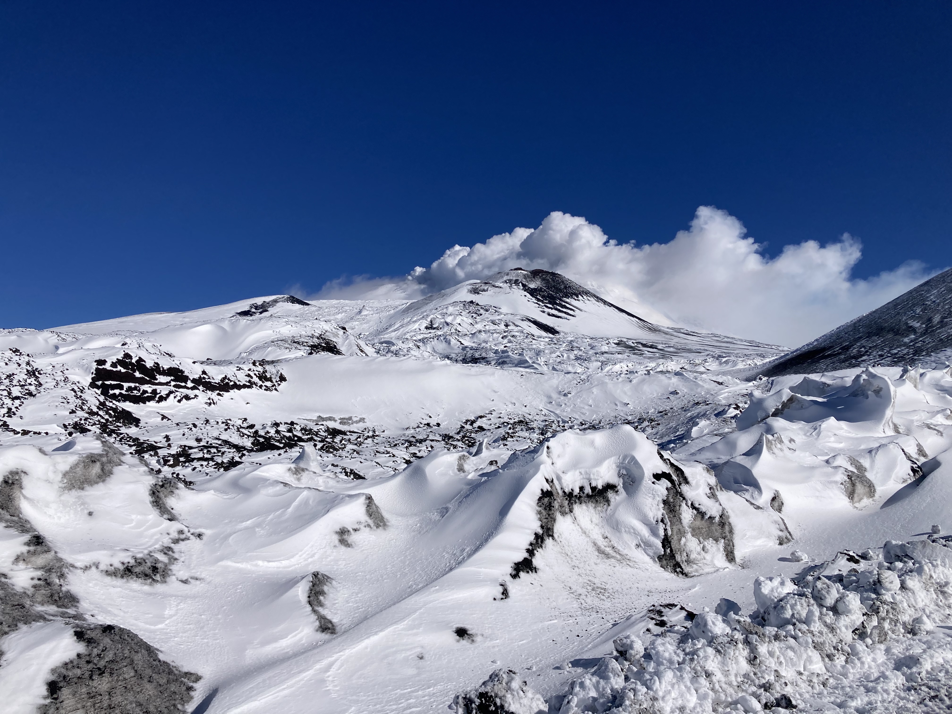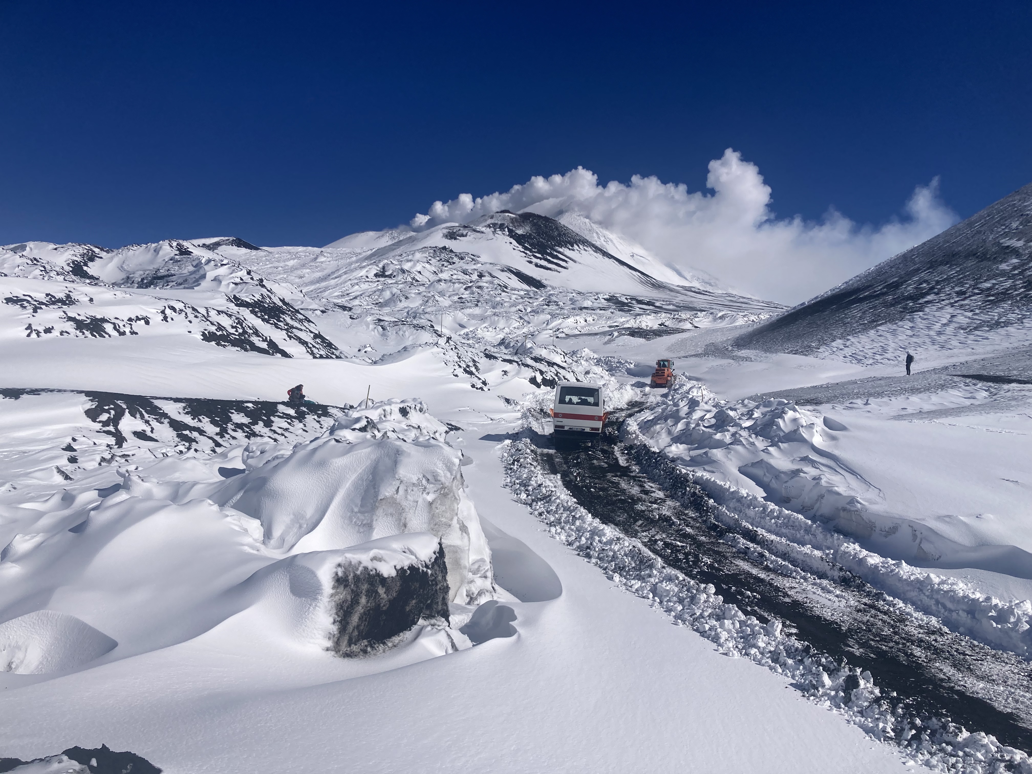 Este fuego de ahora contrasta con el frío de entonces. Cosas de un clima al que hemos vuelto loco y que hace que en Sevilla se achicharraran en abril al tiempo que yo no me separaba del plumas en mi escapada siciliana. De hecho fue allí donde vi por última vez la nieve, en el Etna. Y no fue poca. La noche anterior a mi intento de ascenso cayó tanta que me obligó a elegir entre andar sumergiéndome hasta las rodillas en ella o caminar tras las quitanieves. No llegué arriba, pero la experiencia fue increíble e incluyó el inaugurar, ese día, el telecabina.