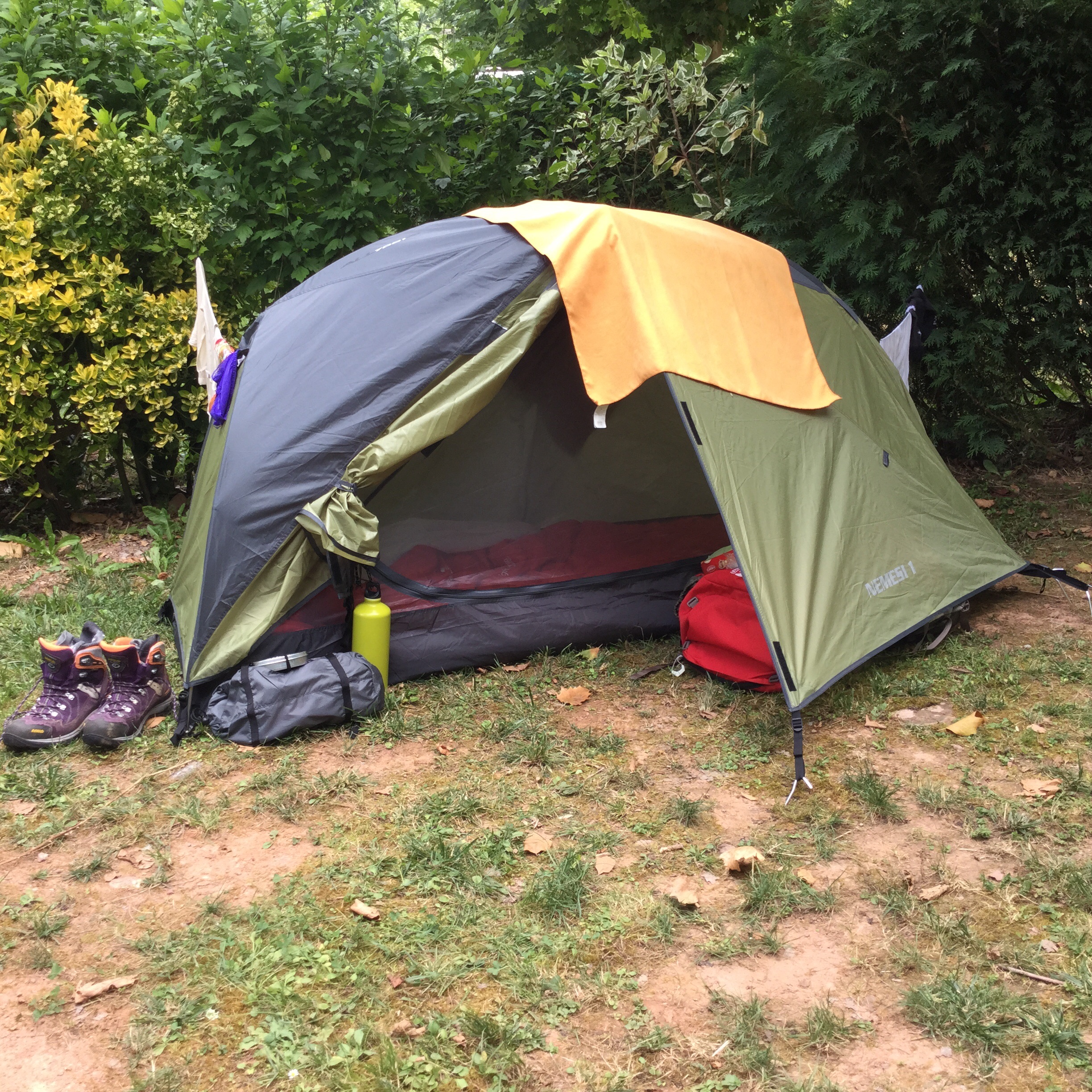 Tienda de campaña (no llega a dos kilos), saco de dormir (de pluma, aproximadamente medio kilo), saco sábana de seda (un capricho), colchoneta inflable ultra ligera de Sea to Summit (unos 300 gramos, la de Trango que usé la primera vez salió mala), toalla y bikini (esto último es un extra pero la parte de arriba me vale de sujetador de repuesto), tres camisetas de manga corta, tres bragas, tres pares de calcetines (seguro que sería suficiente con dos pero no siempre se puede lavar), unas sandalias Teva (que con calcetines son divinas, las botas –ligeras, anchas y bajas, con suela vibram y con el añadido de unas plantillas de gel– las llevo puestas), pantalón corto y largo para andar y otro más para cuando no ando (todos de Columbia súper ligeros y sí, podría llevar el clásico pantalón desmontable pero… no me resulta cómodo –cosas de tener una pierna de mayor diámetro que la media–), dos camisetas de manga larga (una muy ligera y una muy abrigada), polar, plumas e impermeable (todos muy ligeros, especialmente este último, una “membrana” que le dicen ahora), mi GPS Twonav integrado en el móvil (antes lo llevaba físico y con una batería extra) , la ipad (ahí llevo mapas, lectura, la guía Ciceone, toda la información que necesito….), un botiquín mínimo (compeeed, tiritas, anti-inflamatorio, blastoestimulina, antihistamínico, venda elástica adhesiva, ibuprofeno…), un set de costura (tijera, aguja, hilos, imperdible, botones), cosas de aseo (jabón y champú sólidos, pasta y cepillo de dientes, unas pinzas, una cuchilla de afeitar, crema solar y poco más), mi navaja Opinel (que recién comprada es todo un peligro), un cargador y un enchufe con cuatro conexiones USB (para el móvil, la ipad, el GPS y el propio cargador), un frontal, un mechero, un silbato y, para terminar, y además de gorra y gafas de sol, este año también me acompañan mis gafas (sin ellas, imposible ver GPS, mapas o cualquier otra información de tamaño reducido). Y creo que no me dejo nada.